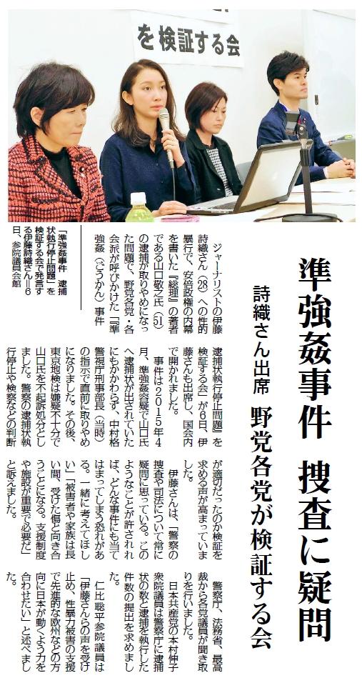 ・準強姦事件、捜査に疑問/野党各党が検証する会/詩織さん出席(12月07日)