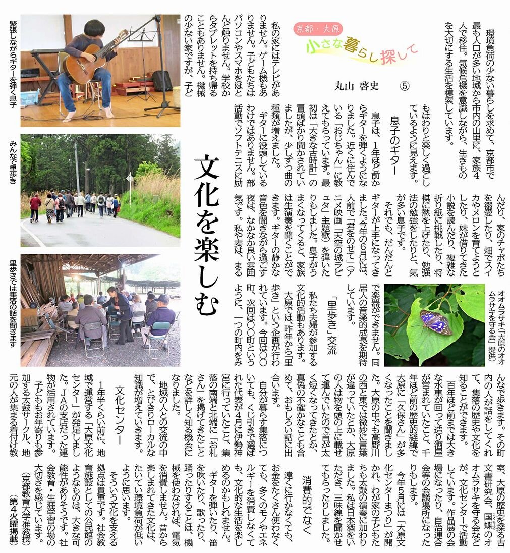 ★丸山啓史さんの「京都・大原 小さな暮らし探して」(第4火曜掲載)。5回目は「文化を楽しむ」(紙面を見る、9月23日付)