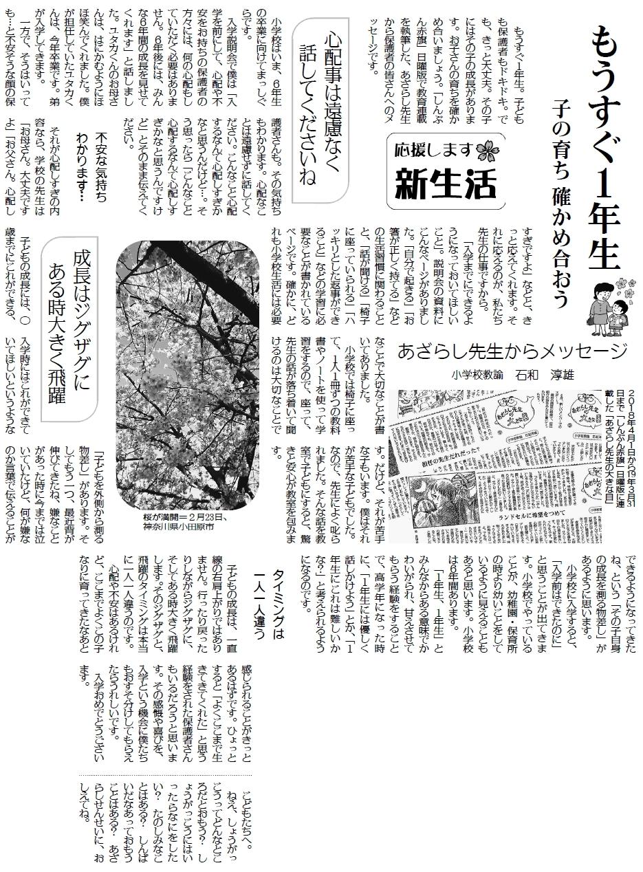★もうすぐ1年生。子どもも保護者もドキドキ。でも、きっと大丈夫。その子にはその子の成長があります。お子さんの育ちを確かめましょう。「しんぶん赤旗」日曜版で教育連載を執筆した、あざらし先生から保護者の皆さんへのメッセージです。(紙面を見る、2月28日付)