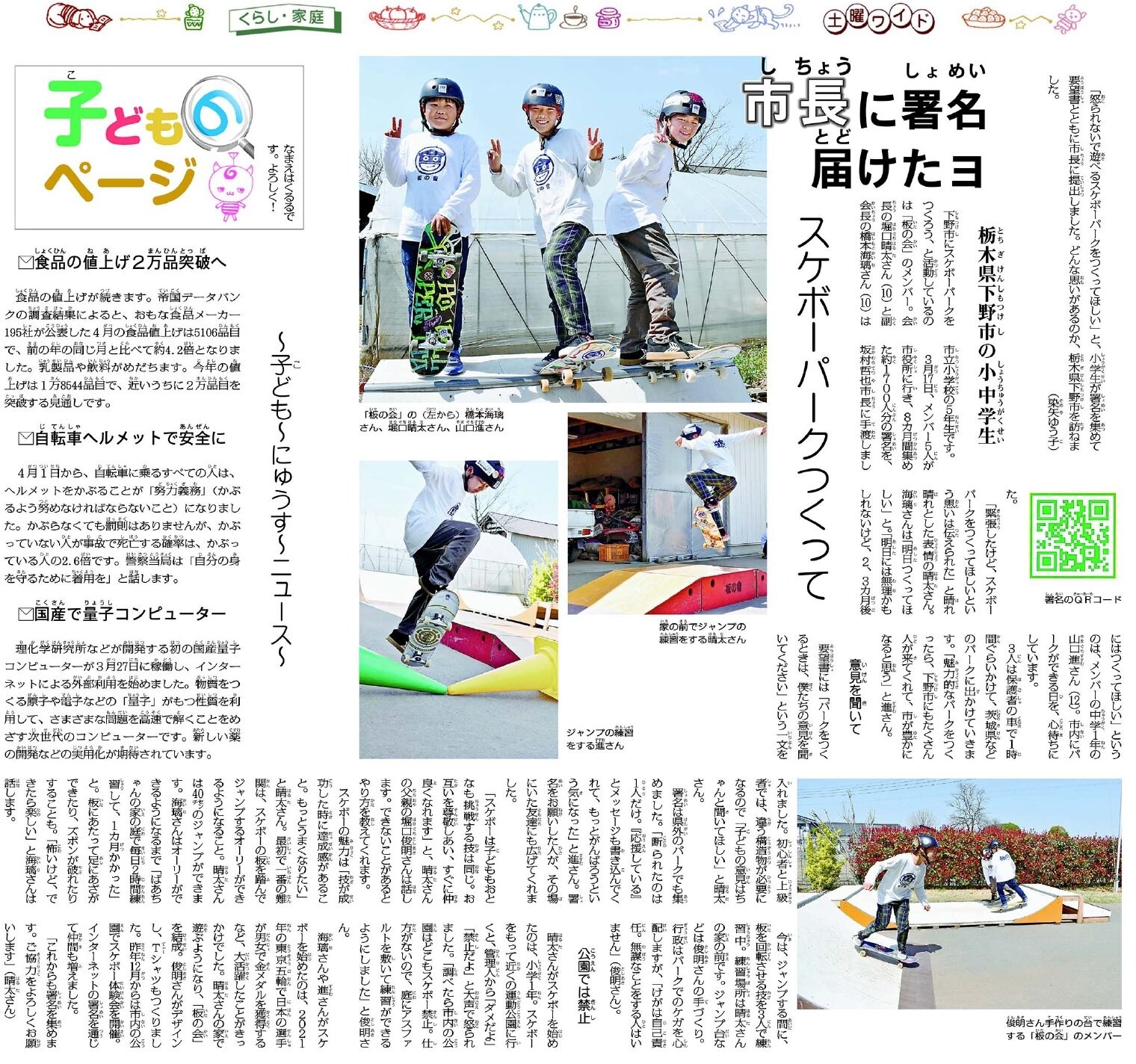 ★まんが「今どき小学生 くるみちゃん的生活」(第1土曜掲載)、「親子で映画プラス」(隔月掲載)、「子どもの本」(第2・第4土曜掲載)など、親子で楽しめるコーナーもカラーに。