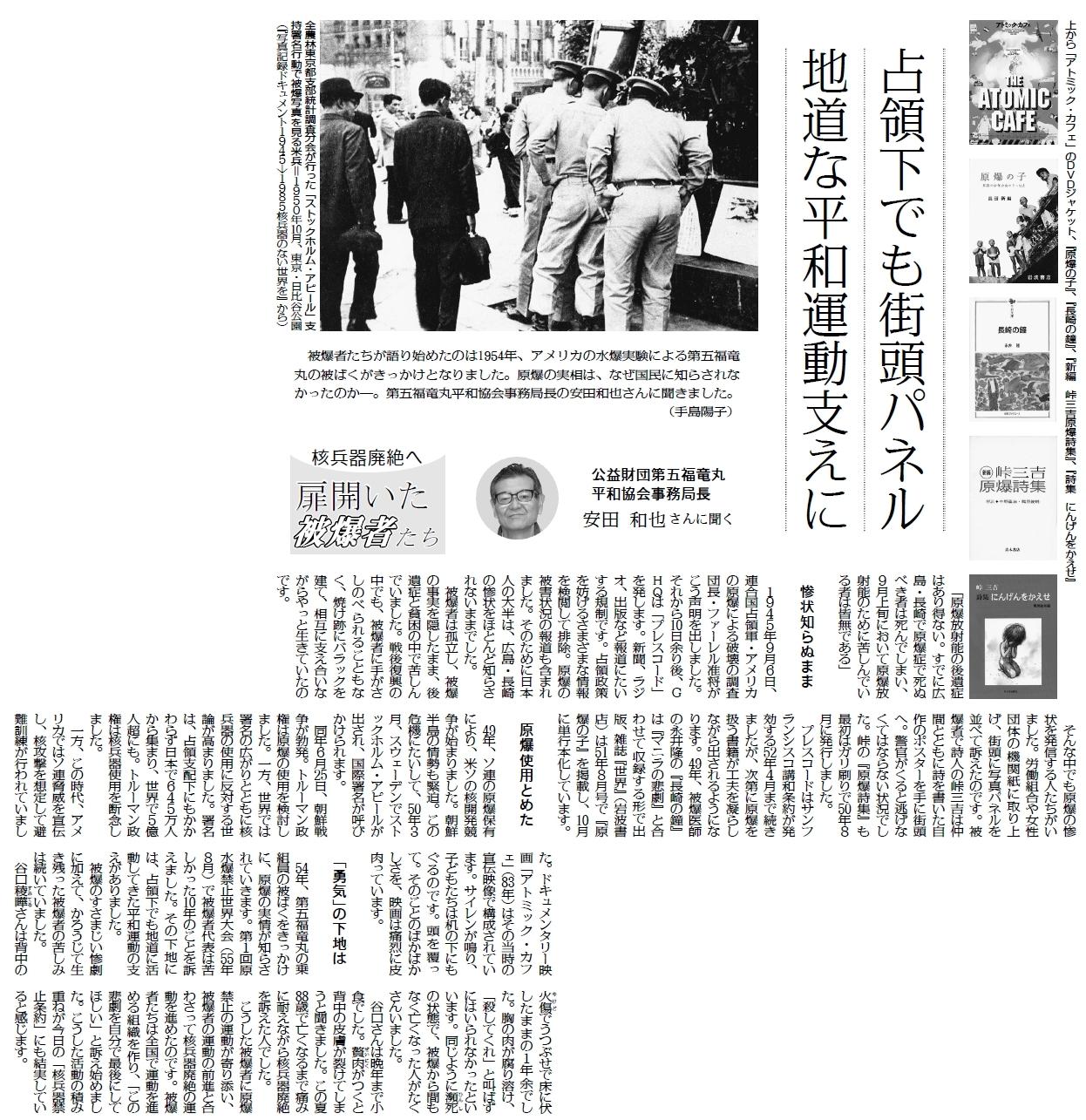 ★シリーズ「核兵器廃絶へ 扉開いた被爆者たち」。被爆者たちが語り始めたのは1954年、アメリカの水爆実験による第五福竜丸の被ばくがきっかけとなりました。原爆の実相はなぜ国民に知らされなかったのか。第五福竜丸平和協会事務局長の安田和也さんに聞きました。(紙面を見る、12月15日付)