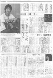 21歳、新進気鋭のバンドネオン奏者、三浦一馬さん。先月、第2作となるニューアルバム「ブエノスアイレスの四季」(ビクター)を発表しました。全曲アストラル・ピアソラ作品の新譜にかけた思いは―。