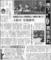大阪市の橋下徹市長による市職員への「思想調査」アンケート。高まる批判に追い詰められ、市長が責任逃れを加速させています。市議会での日本共産党の追及に、まともに反論できない場面が相次ぎました。民主法律協会事務局長・弁護士の増田尚さんにも話を聞きました。