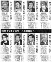 11日、秘密保護法案に反対する声明を記者会見で発表したテレビのキャスター、ジャーナリストの発言から紹介します。