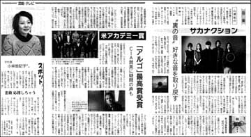 米映画界最大の祭典、アカデミー賞の授賞式が2月25日、ハリウッドでおこなわれました。CIA(米中央情報局)の活動を描く「アルゴ」が最高賞の作品賞になるなど、話題を呼んでいます。