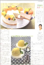 暑い夏にうれしい、ひんやり冷たい手作りスイーツはいかがですか? 濃厚なクリームチーズの味と、ほどよい酸味がおいしいレアチーズケーキは、トロピカルなフルーツを乗せて、見た目も華やかに。メロンをたっぷり使ったシャーベットは、やさしい味のミルク寒天と一緒にどうぞ。