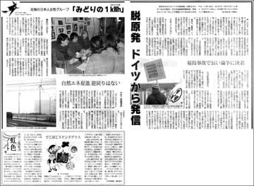 世界が注目するドイツの脱原発・自然エネルギー拡大の動き。それを福島原発事故後、現地からインターネットで発信している日本人女性グループがいます。名づけて「みどりの1kWh(キロワット時)」。その思いをベルリンのカフェで聞きました。