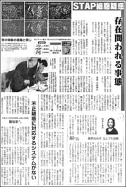 生物学の常識を覆す発見として世界に衝撃を与えた新たな万能細胞「STAP(スタップ)細胞」論文。これに多数の疑惑が指摘された問題で、主要執筆者が所属する理化学研究所は14日、不適切画像流用などを認めました。いったい何が問われているのでしょうか。日本分子生物学会理事、大阪大学教授の篠原彰さんにも話を聞きました。