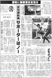 Jリーグは13日、浦和に無観客試合(23日、清水戦=埼玉スタジアム)の重い処分を下しました。同クラブの一部サポーターが、スタジアムに差別的な横断幕を掲げ、クラブ側も放置したからです。一連の問題をサポーターはどう受け止めているのでしょうか。サッカージャーナリストの大住良之さんにも話を聞きました。