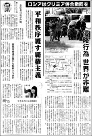 ロシアはクリミア併合を撤回せよ―。国連憲章や国際法の原則を無視し、軍事的圧力のもとで一方的にクリミア半島を併合するというロシアの侵略行為に、国際社会で批判が強まっています。