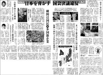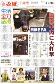 日本とオーストラリアで交渉してきた日豪経済連携協定(EPA)が「大筋合意」しました。30道県のJA中央会長らが講義、懸念の声をあげています。青森、福島両県のJA中央会長に話を聞きました。日豪経済連携協定の「大筋合意」による影響と、環太平洋連携協定(TPP)について、田代洋一・大妻女子大学教授に聞きました。主婦連合会会長の山根香織さん、日本共産党農林漁民局長・参院議員の紙智子さんに聞きました。