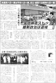 日本共産党の志位和夫委員長は5日、大阪の2カ所で街頭演説し、いっせい地方選挙で「安倍暴走政治のストップ」「橋下・維新政治の退場」の「二つの審判」を下してほしいと訴えました。