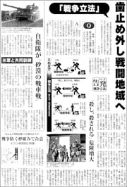 文部科学省が6日に検定結果を公表した中学校教科書(2016年度から使用)。そのうち一部の社会科教科書に「戦争する国」づくりをねらう安倍自民党政権の姿勢が強く現れています。その内容は-。子どもと教科書全国ネット21常任運営委員、歴史教育者協議会元委員長の石山久男さんにも話を聞きました。日本共産党の畑野君枝国会議員団文部科学部会長はは6日、談話を発表しました。