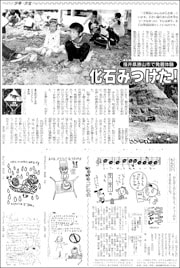 一生懸命にみんなが石を割っています。小さい破片から目を守るゴーグルをつけ、手には軍手。化石の発掘体験をしているのです。福井県勝山市の県立恐竜博物館からのリポートです。