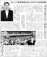 審議するほどの憲法違反の声が強まる戦争法案。衆院での強行採決後、さらに反対運動が広がるなか7月27日からは参院での審議が始まりました。本会議で代表質問に立った日本共産党の市田忠義副委員長は「いま参議院は違憲立法の成立に手を貸すのかどうか、鋭く問われている」と強調、「国中に国民の声をとどろかせ、法案を廃案に追い込む」と表明しました。