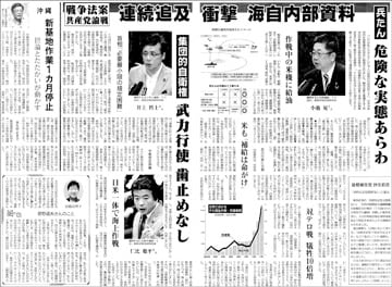 「これは私どもが入手した海上自衛隊の内部資料です」。日本共産党の小池晃議員の発言に緊張が走りました。戦争法案を審議する7月29日の参院安保法制特別委員会。内部資料には同法案で米軍と自衛隊がまさに一体で戦争する実態が-。テレビも注目した小池氏とそれに続く井上哲士、仁比聡平の3議員の質問のポイントを紹介します。