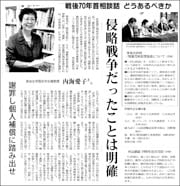安倍晋三首相が出そうとしている「戦後70年談話」。国際法などの学者74人が、侵略戦争と植民地支配を「潔く認めよ」という声明を発表しました。賛同者の内海愛子・恵泉女学園大学名誉教授(日本・アジア関係論)に聞きました。