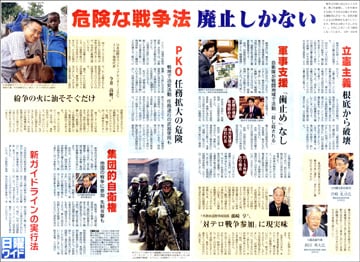 戦争法の強行成立から2カ月余。憲法を破壊し、日本を戦争する国にする同法の廃止を求める運動が広がる一方、安倍内閣による法の具体化も進行しています。戦争法は廃止するしかない-。そのことがいっそう鮮明になっています。JVCスーダン現地代表の今井高樹さん、元外務省国際情報局長の孫崎享さんにも話を聞きました。