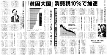 「消費税増税にはひとかけらの道理もない」-。日本共産党の小池晃副委員長は18日の参院予算委員会の基本的質疑で、安倍政権が進める消費税10%増税のデタラメぶりを明らかにし、消費税増税の中止を迫りました。論戦のポイントは...。