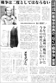 「自衛隊員が海外で殺し殺されることはあってはならない」-。こう語るのは、和歌山県橋本市の橋本防衛協会会長・阪口繁昭さん(88)です。若者たちに自衛隊への入隊を勧めてきた阪口さんの戦争法(安保法制)に反対する思いは...。