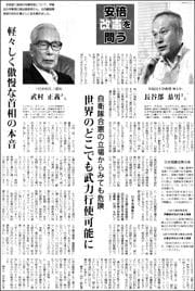 安倍晋三首相の改憲発言について、早稲田大学教授の長谷部恭男さん、元内閣官房長官の武村正義さんに聞きました。