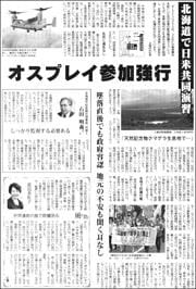 豪で5日、3人死亡の墜落事故を起こした、在日米軍の新型輸送機オスプレイ。米軍は、不安の声を無視し、北海道で実施中の日米共同演習での参加を強行しました。弁護士で北海道平和委員会理事長の石田明義さんにも話を聞きました。