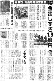 沖縄県名護市辺野古の米軍新基地建設をめぐり重大疑惑が浮上しました。鶴保庸介・前沖縄北方担当相は大臣在任中、工事参入を狙う業者と大臣室で7回も面会し、陳情を受けていました。業者は面会を仲介した鶴保氏の後援会長に1千万円を超える資金を提供したと証言。鶴保氏自身も業者から選挙支援や飲食接待を受ける一方、業者のために自民党国会議員を紹介し、防衛省へも問い合わせをしていました。