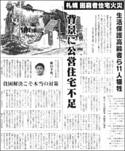 札幌市で1月31日の深夜、生活困窮者の共同住宅「そしあるハイム」が全焼し、11人が亡くなりました。生活困窮者や高齢者が安心して暮らすことのできる住居の確保が求められます。