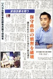 近著『保守と立憲』で、保守の側から安倍政治を批判している政治学者の中島岳志さん(近代日本政治思想、東京工業大学教授)に聞きました。