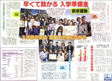 6人に1人が利用する就学援助制度の入学準備金。住民の運動に押されて、支給を入学前に前倒しする自治体が大きく広がっています。