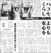 沖縄市の市長選(22日投票)が15日告示されます。前市議の諸見里ひろみ氏=日本共産党、社民、社大、自由、民進推薦=と現職=自民、公明、維新推薦=の一騎打ちの様相です。