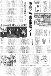 愛媛県松山市議選が22日告示、29日投票でたたかわれます。日本共産党は小崎愛子(60)、杉村ちえ(41)=ともに現=、いのもり春枝(68)=新=の3氏が代表質問ができる「交渉会派」となる議席増を目指します。