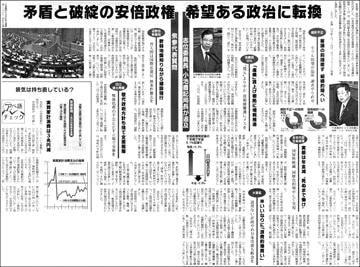 ウソやゴマカシの発言が多い安倍晋三首相。それを検証するのが「アベ語チェック」です。安倍首相の代表質問への答弁からチェックします。(5面)