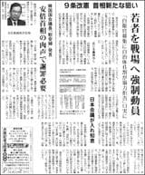 安倍晋三首相が憲法9条改定の新たな理屈を持ち出し、国会の答弁や自民党大会で声高に訴えています。(2面)