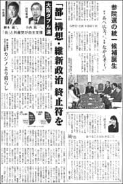 夏の参院選に向け、32ある1人区のうち熊本県、愛媛県で野党統一候補が誕生しました。日本共産党、立憲民主党、国民民主党、衆院会派「社会保障を立て直す国民会議」、自由党、社民党の6野党会派書記局長・幹事長が国会内で会談し確認しました。(4面)