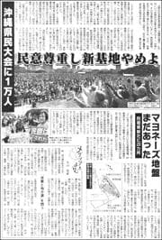 辺野古の米軍新基地建設(名護市)に反対という圧倒的な民意を実現させる-。県民投票後、初めて沖縄県で開かれた県民大会(16日)。主催者発表で参加者は1万人を超えました。(35面)