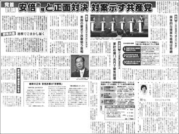 市民と野党の共闘の勝利、日本党の躍進で「安倍政治サヨナラ」の審判を下すのか、それとも安倍政治の暴走を許すのか-。4日公示(21日投票)の参院選は、日本の命運がかかった歴史的な選挙です。(1、4~10面)
