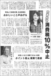 安倍政権が10月から強行しようとしている消費税10%への増税。歌手の日野美歌さん、山形県商工会連合会会長の小野木覺さんに聞きました。(7面)