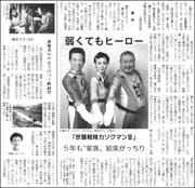 プリエールプロデュース「世襲戦隊家族マンⅢ」は世代交代にさしかかったヒーロー一家を描きます。出演する山口良一さん、熊谷真実さん、小浦一優さん(芋洗坂係長)に聞きました。(31面)