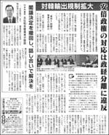 安倍政権が輸出優遇措置の対象国(旧ホワイト国)から韓国を除外する政令の改正を閣議決定しました。日本共産党の志位和夫委員長は談話を発表しました。(2面)