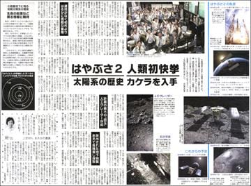 日本の探査機「はやぶさ2」は、小惑星に人工クレーターを作る衝突実験に成功し、2回の着陸・試料採取を成し遂げました。(4、5面)