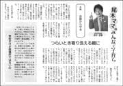 子育ては楽しいものですが悩んだりイライラしたりすることもたくさんありますよね。尾木ママこと教育評論家の尾木直樹さんが、気持ちが楽になる子育ての極意を語るシリーズです。今回のお題は「自殺から守る」です。(8面)