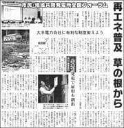 日本でも市民主体の発電所を増やそうと2002年から続く市民共同発電所全国フォーラムが岡山市で開かれました(1〜3日)。(10面)
