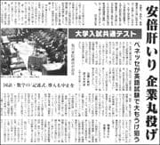 批判を浴びて延期に追い込まれた、大学入学共通テストへの英語民間試験導入。制度の転換と民間企業参入に道を開いたのが安倍晋三首相であることを日本共産党の塩川鉄也衆院議員が追及しました(6日)。(11面)