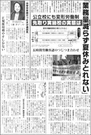 安倍政権げ狙う公立学校教員への「1年単位の変形労働時間制」を導入するための法案が7日、衆院本会議で審議入りしました。「神奈川過労死等を考える家族の会」代表の工藤祥子さんにも話を聞きました。(35面)