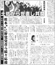 24日投票の高知知事選で、野党統一候補の松本けんじ氏(35)が逆転勝利を目指し激しく追い上げています。(4面)