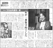 劇団民藝公演「泰山木の木の下で」は、社会の片隅で原爆の苦しみを抱えて生きる人々を見つめた作品です。出演する日色ともゑさんと、塩田泰久さんが魅力を語ります。(31面)