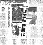 女子フィギュアスケートの様相が一変しました。ロシアの3選手がGPシリーズの最上段を独占しています。昨年のGPファイナルを制した紀平梨花選手は一度も優勝できていません。(32面)