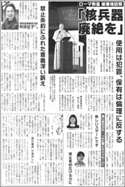 来日したローマ・カトリック教会のフランシスコ教皇は11月24日、広島と長崎を訪ね、核兵器廃絶を力強く訴えました。被団協の和田征子さんにも話を聞きました。(35面)