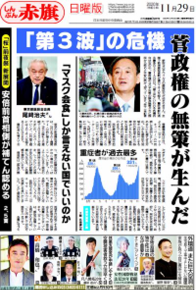 新型コロナウイルスの感染拡大が止まりません。全国で新規感染者が連日2000人を超え、重症者数も過去最多の331人(22日)。「第3波」といわれる危機的な状況の中、菅政権のコロナ対策の無為無策ぶりに国民から怒りと不安の声が上がっています。